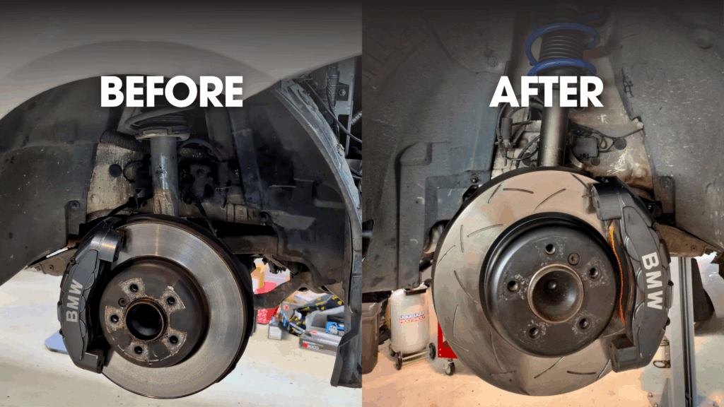With that extra horsepower, we needed stopping power. Not just to keep up with the performance profile of the car, but because the 135i had a stock diff that used braking for traction control. Over 2 days of hard driving, that was going to be a problem.