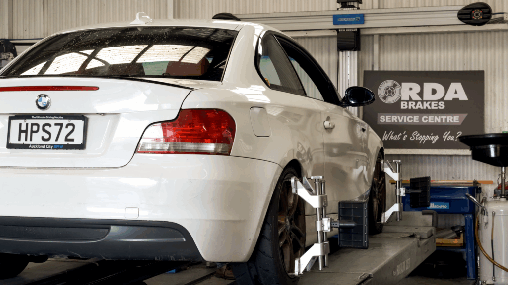 So we rolled it into RDA Brakes Service Center to get new RDA slotted discs and performance pads, alongside DOT 5.1 fluid for the extra temperature headroom. We also fitted fresh Code9 shocks and thicker Whiteline sway bars front and rear. Finally, a proper wheel alignment tied it all together.